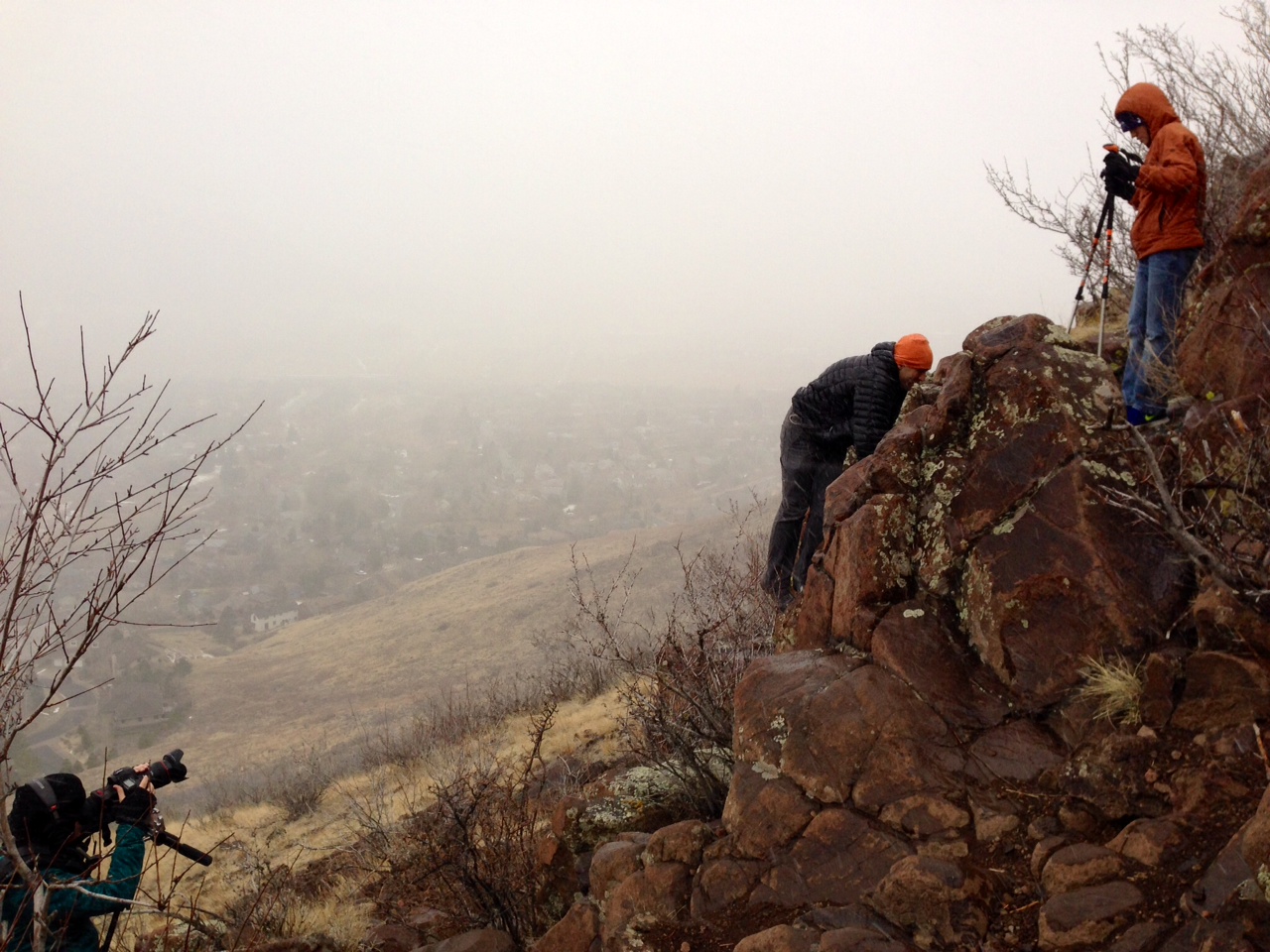 Photo #2: Filming Erik scramble up a rock wall behind his house in an oncoming snowstorm.