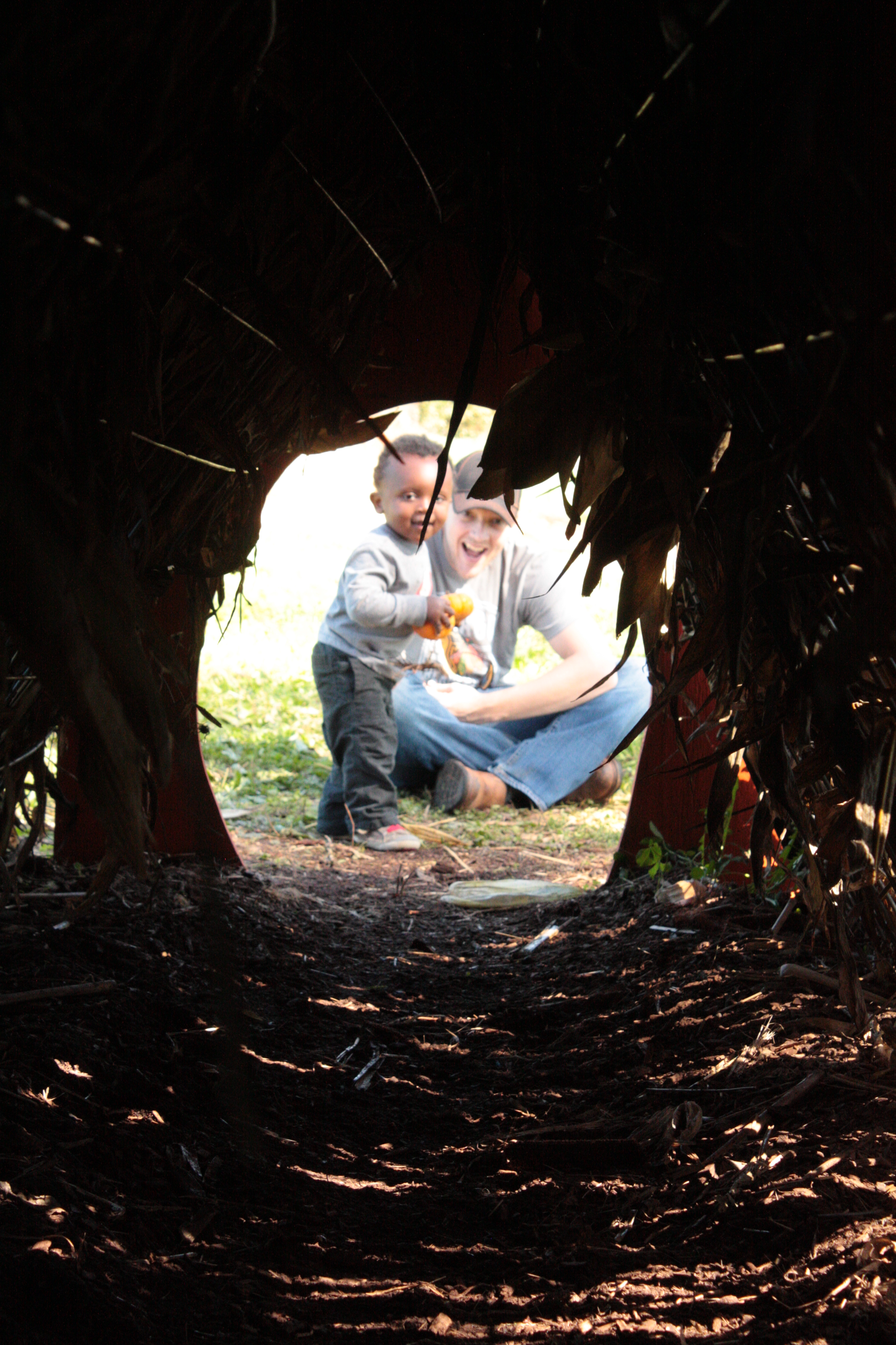 The mini corn maze for kids was more Miles’ speed. It was more of a corn tunnel, but he l-o-v-e-d it. I think he may have loved playing in the huge pile of straw even more, though.